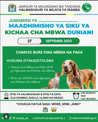 MAADHIMISHO YA SIKU YA KICHAA CHA MBWA DUNIANI