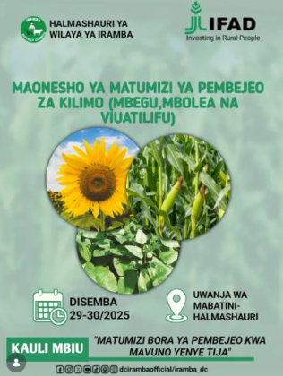 MAONESHO YA MATUMIZI YA PEMBEJEO ZA KILIMO (MBEGU, MBOLEA NA VIUATILIFU) HALMASHAURI YA WILAYA YA IRAMBA DISEMBA 29-30, 2025.