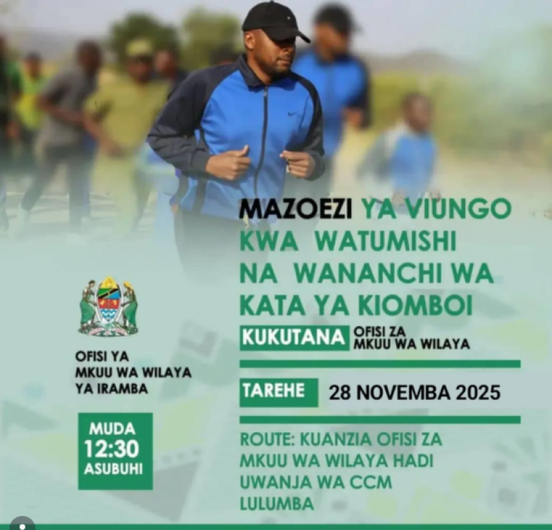 MAZOEZI YA VIUNGO YA KILA IJUMAA KWA WATUMISHI NA WANANCHI WOTE WA KIOMBOI NA MAENEO YA JIRANI
