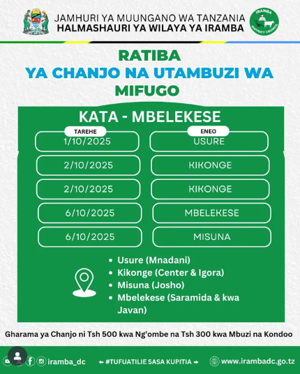 RATIBA YA CHANJO NA UTAMBUZI WA MIFUGO KATA YA MBELEKESE