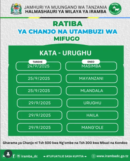 RATIBA YA CHANJO NA UTAMBUZI WA MIFUGO KATA YA URUGHU