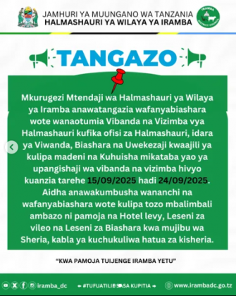 TANGAZO KWA UMMA KUHUSU MIKOPO YA 10% INAYOTOLEWA KWA VIKUNDI VYA WANAWAKE, VIJANA NA WATU WENYE ULEMAVU KWA ROBO YA PILI YA MWAKA WA FEDHA 2024/2025.