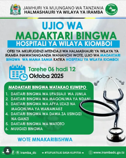 UJIO WA MADAKTARI BINGWA, HOSPITALI YA WILAYA KIOMBOI