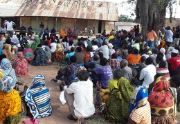 Wananchi katika kata ya Old Kiomboi tarafa ya Kisiriri wilaya ya Iramba mkoani Singida wakimsikiliza kwa makini Mkuu wa wilaya ya Iramba Mhe. Emmanuel Luhahula alipokua akiwahutubia mapema tarehe 30Ma...