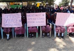 Watoto wilayani Iramba wakisherekea kilele cha maadhimisho ya siku ya mtoto wa Afrika yaliyofanyika kijjiji cha Nguvumali kata ya Ndago tarafa ya Ndago wilaya ya Iramba leo Tarehe 16.06.20...