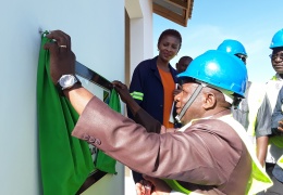 Mhe, Mkuu wa Wilaya ya Iramba, Emmanuel Luhahula, akiweka jiwe la msingi mradi wa maji katika wiki ya maji Duniani kijiji cha Meli kata ya Old Kimboi.
