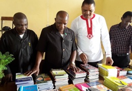 Mkuu wa wilaya ya Iramba mkoani Mhe. Emmanuel Luhahula akikabidhiwa miche ya miti 3000 ya aina mbalimbali kwa ajili ya kuboresha mazingira katika shule ya sekondari Kizaga na shule za msingi kutok...