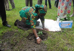 Mkuu wa Mkoa wa Singida Dkt. Rehema Nchimbi akipanda Mti KatikaKijiji cha Ng’anguli Kata ya Maluga Tarafa ya Kinampanda Wilaya ya Iramba Mkoa wa Singida.