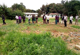 Mkurugenzi wa Halmashauri ya Wilaya Iramba Mr. Linno Mwageni akikagua Ujenzi wa Kituo cha Afya Leo Tarehe 8 January 2018....